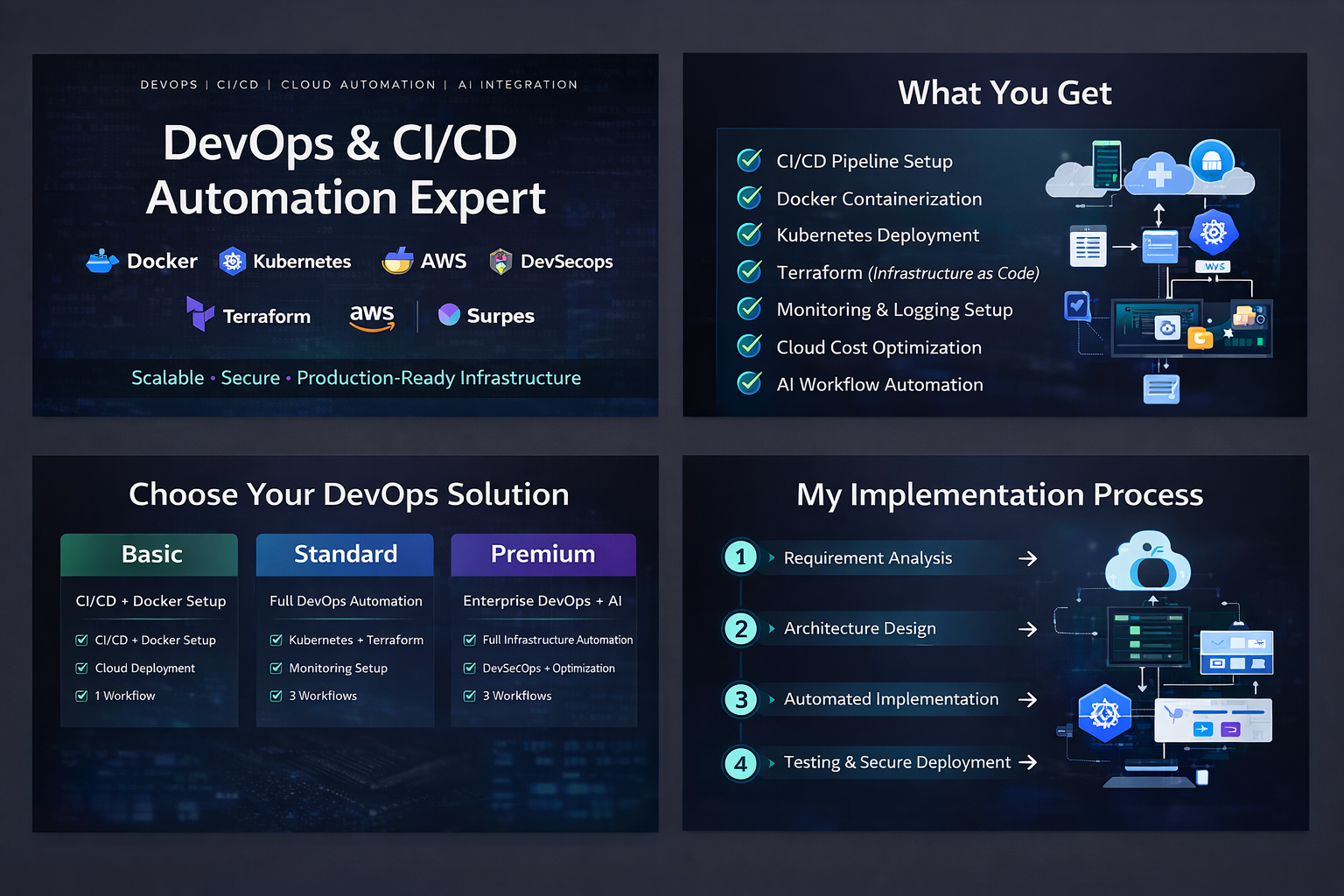DevOps Engineer & AI Automation Specialist AWS CI/CD Docker Kubernetes I build scalable, secure cloud infrastructure for startups and SaaS. Expert in CI/CD pipelines, containerization, Kubernetes, Terraform (IaC), AWS cost optimization, and AI workflow automation. Focused on faster deployments, reduced downtime, and reliable production systems that scale globally.