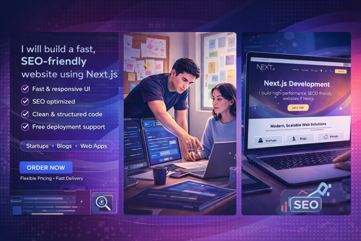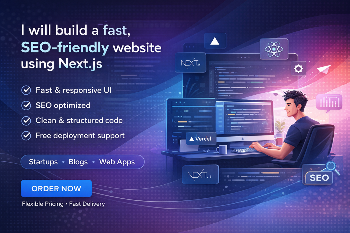 I develop high-performance Nextjs websites optimized for speed, SEO, and scalability. I focus on professional UI, smooth user experience, and structured code.