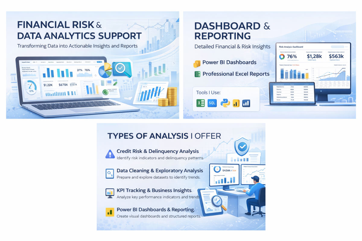 I work in financial risk and data analytics, supporting teams with data analysis, risk insights, and dashboard reporting using SQL, Excel, Python, and Power BI.