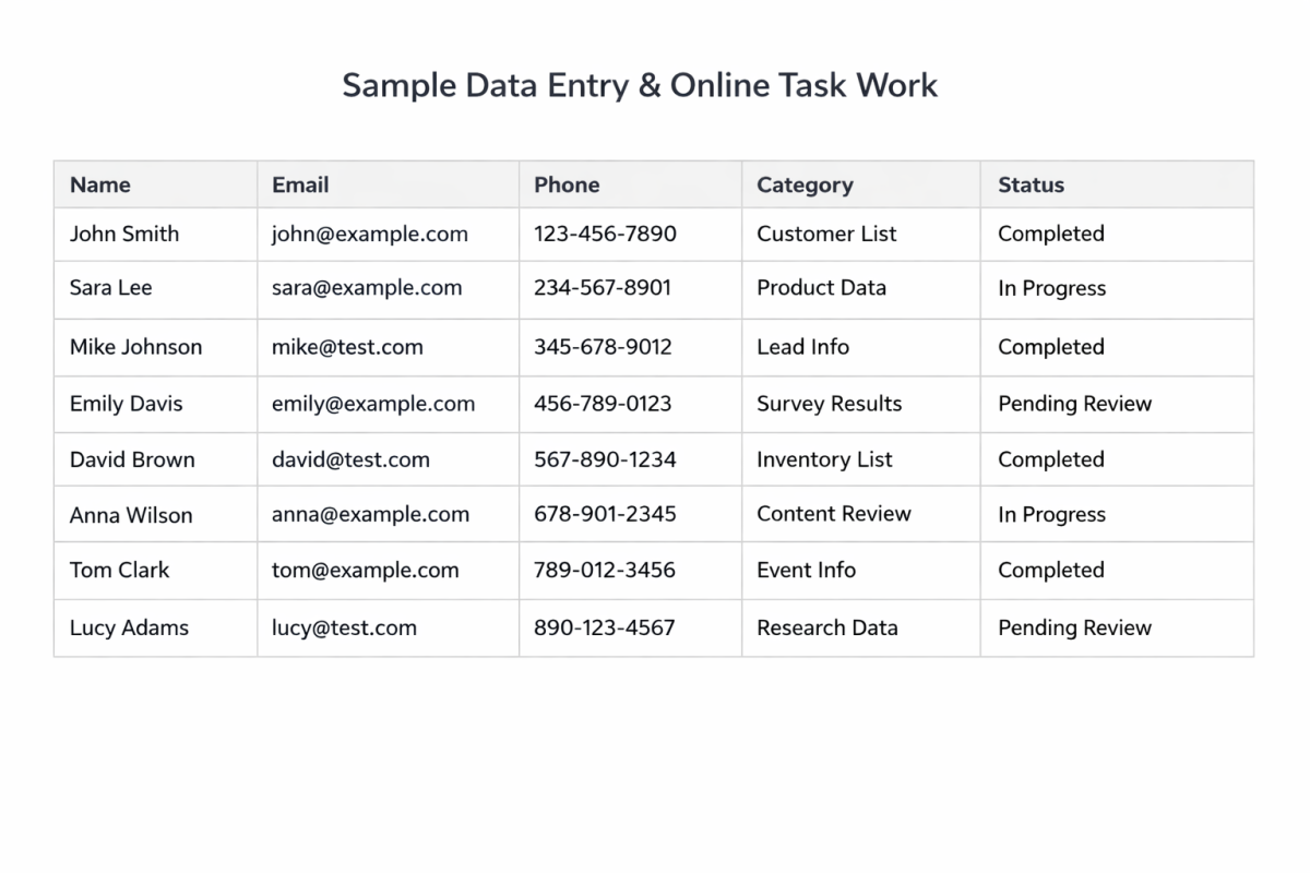 I provide reliable and detail-oriented support for online task-based work and data-related services. My primary focus is on completing assigned tasks accurately while following all instructions and platform guidelines strictly. I understand the importance of quality, consistency, and timely delivery in task-based projects, and I ensure that every assignment is handled with full attention and responsibility.