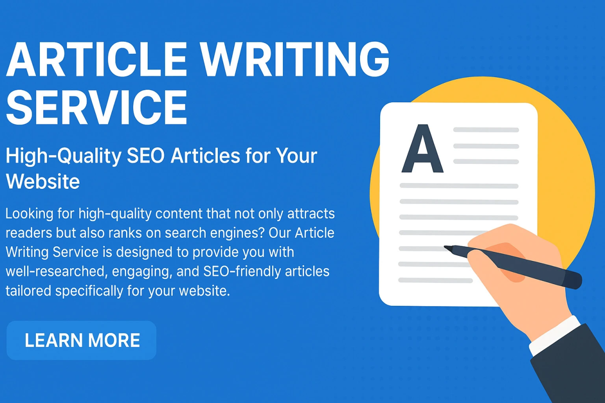 Looking for high-quality content that not only attracts readers but also ranks on search engines? Our Article Writing Service is designed to provide you with well-researched, engaging, and SEO-friendly articles tailored specifically for your website.