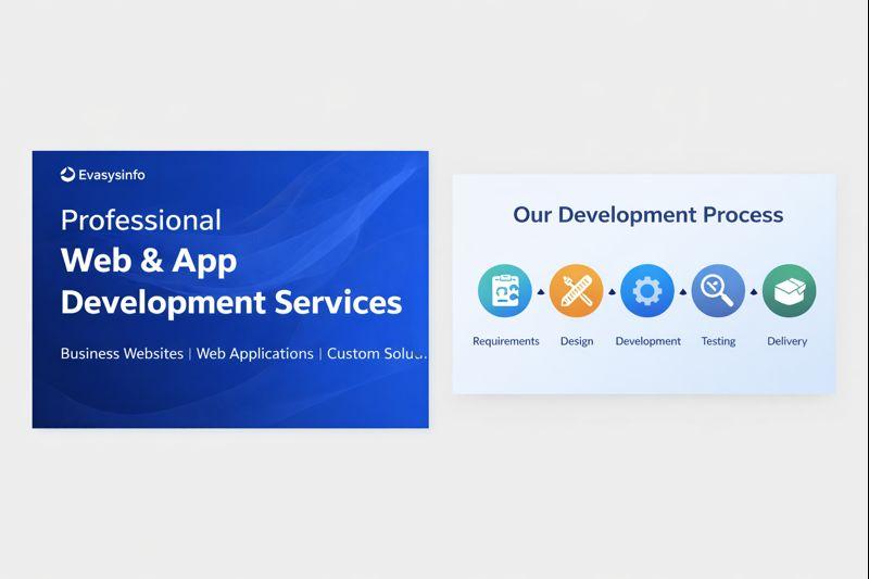 Evasysinfo Pvt. Ltd. is a professional IT services company providing custom web development, mobile app development, and scalable digital solutions. We work with startups, small businesses, and growing companies to design and deploy reliable software products. Our focus is on clear communication, secure development, timely delivery, and long-term partnerships that support real business growth.