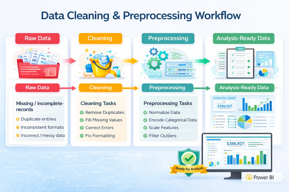 I’m a Data Analyst specializing in data preprocessing, feature engineering, and applied machine learning. I transform raw data into clean, analysis-ready datasets, build meaningful features, and apply ML models to generate reliable insights. I work with Python (Pandas, NumPy, Scikit-learn), SQL, Excel, and data visualization tool (Power BI) to deliver accurate, actionable insights that support real business decisions.