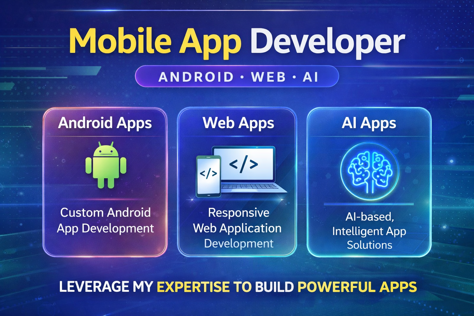 I am a professional Mobile App Developer with experience in building high-quality Android and web applications. I focus on creating user-friendly, efficient, and scalable solutions that meet client requirements and business goals.