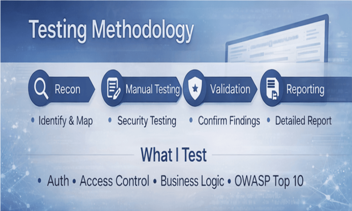 I test web applications, APIs, SaaS platforms, and internal tools. Mobile apps and infrastructure testing are not included unless discussed separately.