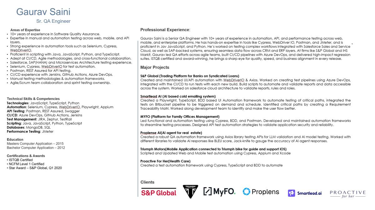 I’m a Senior QA / SDET with 10+ years of experience, and I help teams find critical issues early and build stable automation.