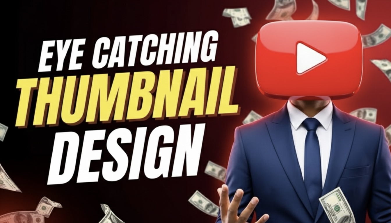 I use strong typography, proper color contrast, and clean composition to improve click through rate and viewer engagement.