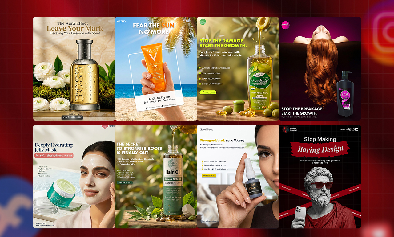 Whether it’s a luxury skincare product, makeup launch, or a full beauty campaign, I ensure your social media visuals capture attention, engage your audience, highlight your product’s value, and create a lasting impression. Every design is made to convert viewers into loyal customers and make your brand truly unforgettable.