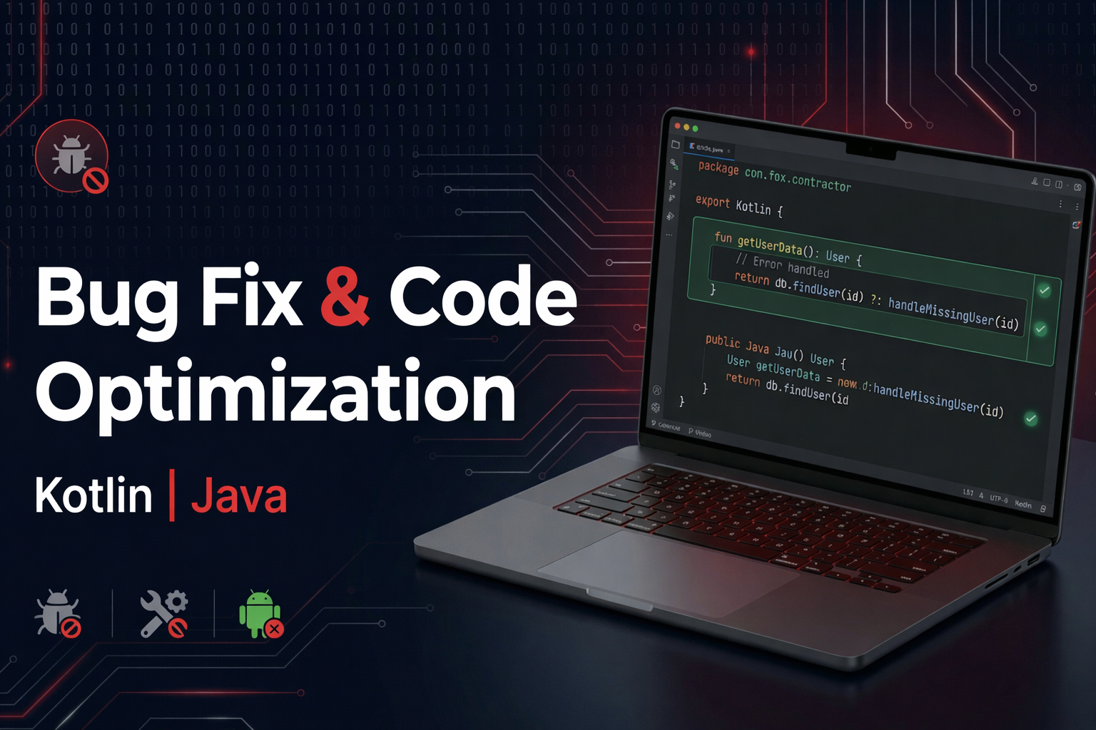 Fix up to 3 bugs or crashes in your Kotlin or Java Android app.