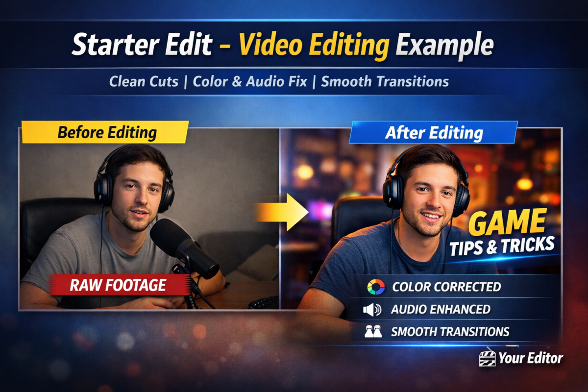 I will professionally edit your videos to a premium, high-quality standard that makes your content look clean, engaging, and ready for any platform. My goal is to transform your raw footage into a polished, visually appealing video that clearly delivers your message and captures your audience’s attention.