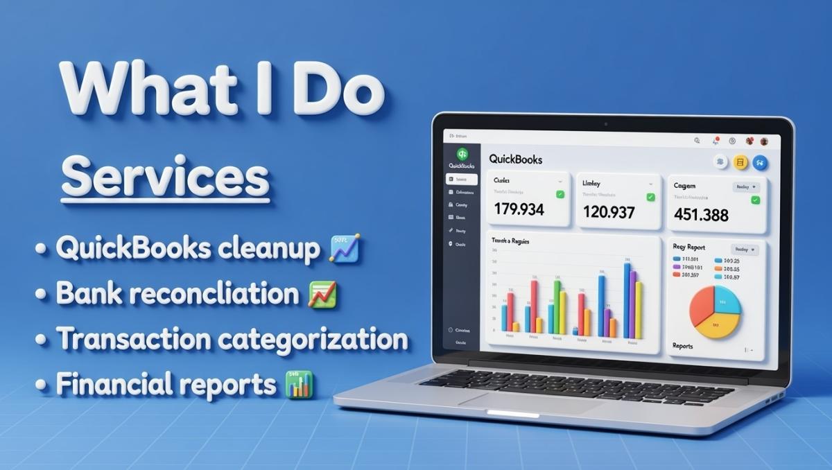 My services include QuickBooks cleanup, transaction review and categorization, bank and credit card reconciliation, accounts payable and accounts receivable review, and preparation of accurate financial reports. These reports help you understand cash flow, expenses, income trends, and overall financial performance. Whether you are preparing for tax filing, investor review, or internal planning, clean books are essential.