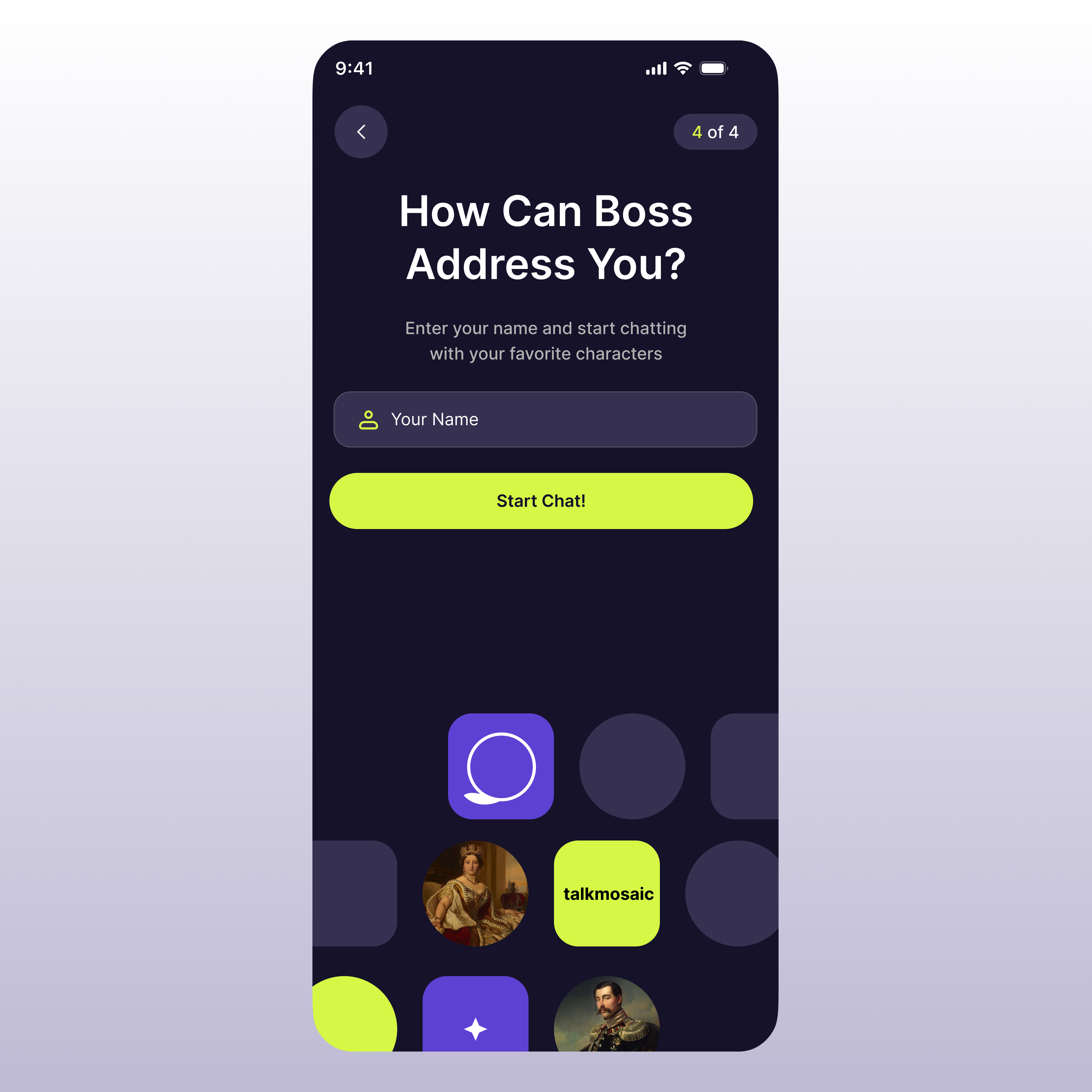 Modern and clean single mobile app or website UI screen design.