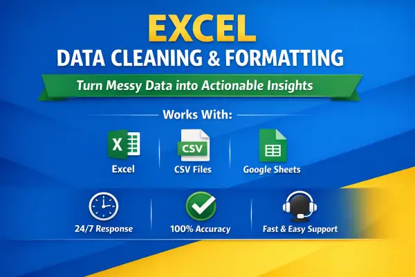 I work with all types of Excel files including sales data, customer lists, invoices, reports, survey data, and raw exported files from any system.