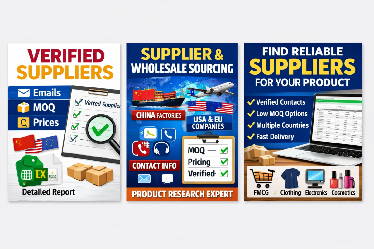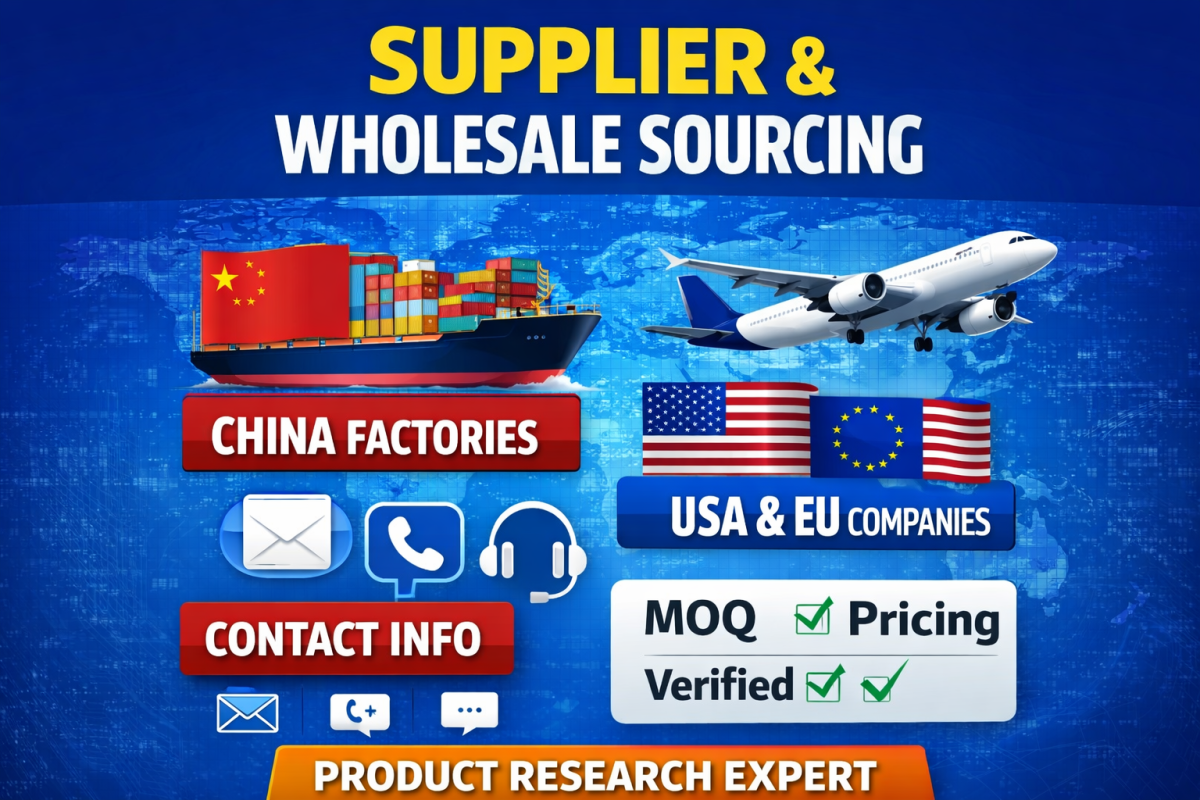 All research is carried out using trusted online sources, supplier platforms, business directories, and official company websites. The final results are delivered in a well-structured Excel or Google Sheets file, making it easy for you to review, share, or use for purchasing decisions.