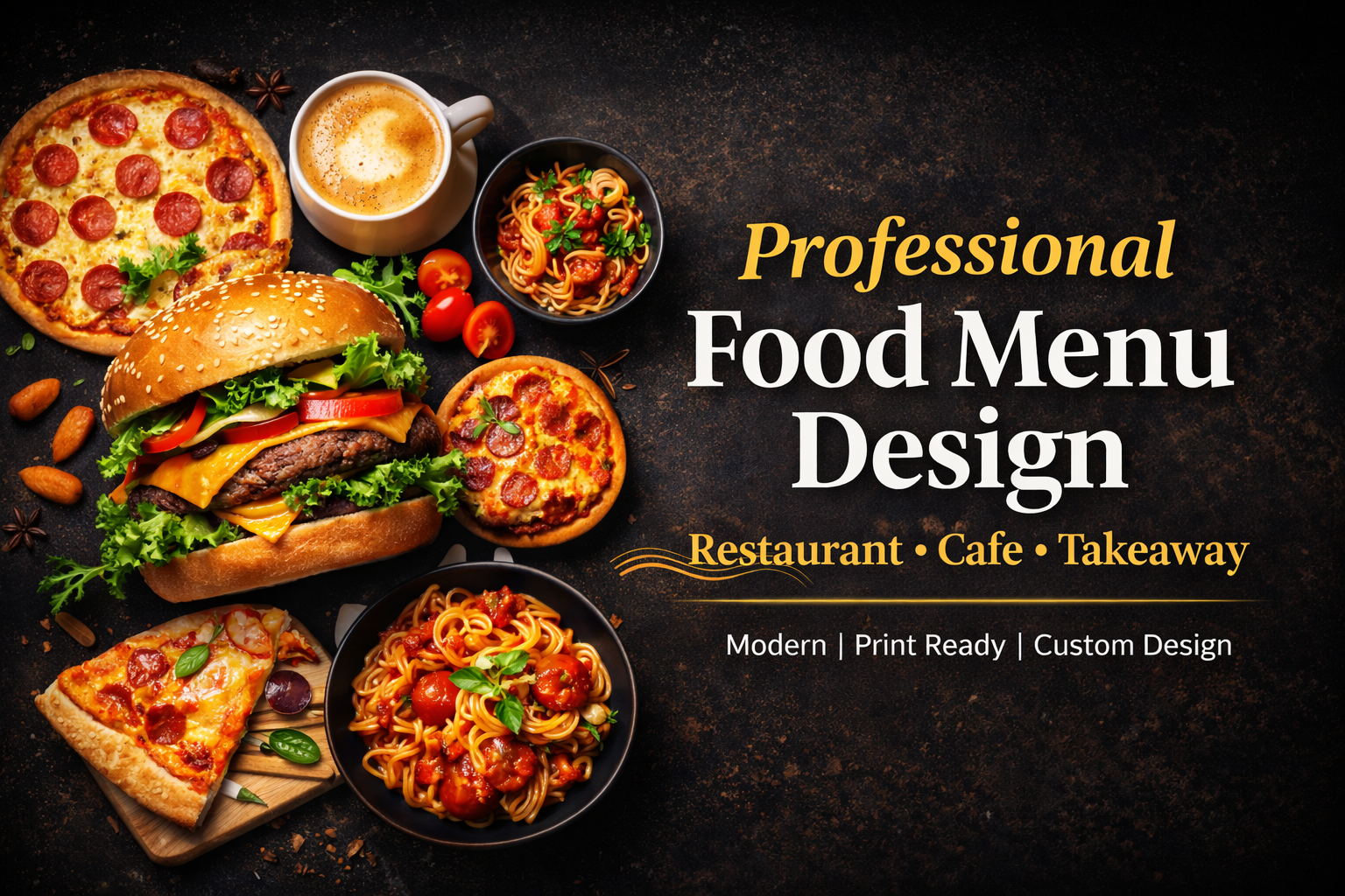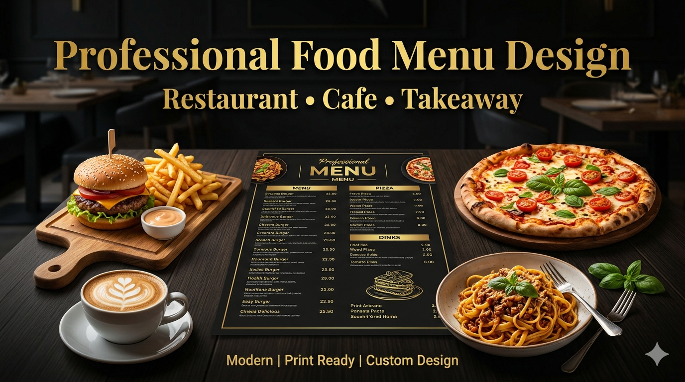 I need your menu items, prices, logo (if available), preferred colors, and any reference or example you like.