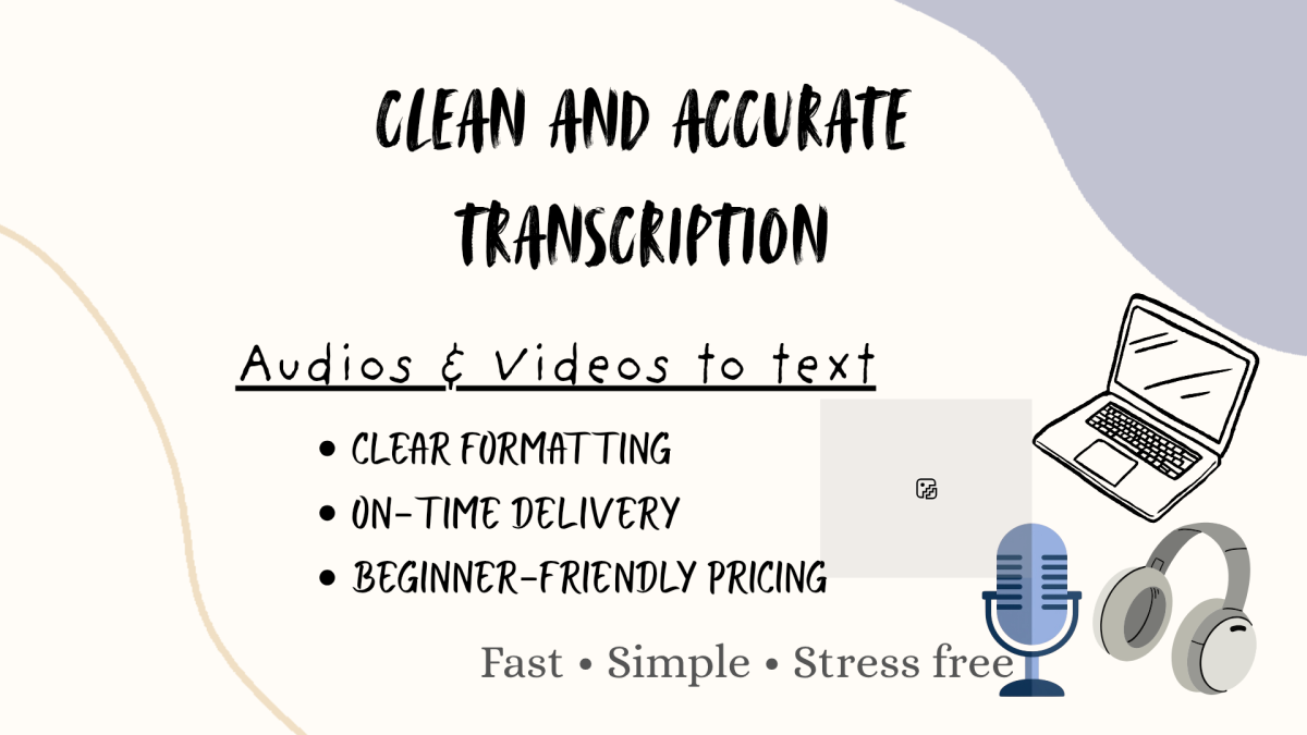 I will accurately transcribe clear audio or video files into clean, easy-to-read text. This package is perfect for short interviews, meetings, podcasts, or voice notes with minimal background noise.