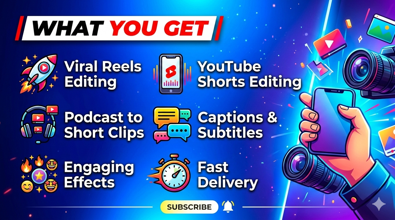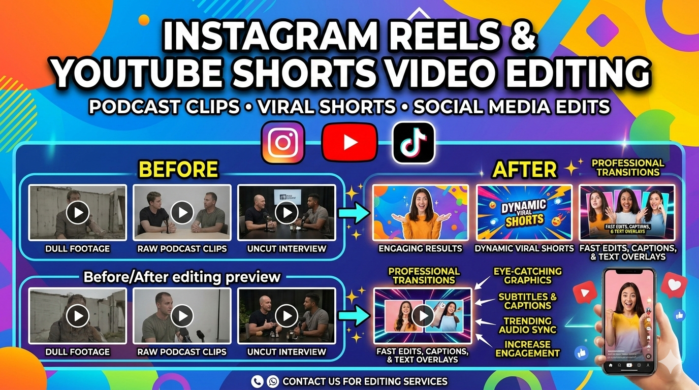 If you’re ready to grow on Instagram Reels, YouTube Shorts, and TikTok with eye-catching AI-enhanced shorts, send me a message with your niche and a sample clip. I’ll recommend the best approach (hook style, pacing, caption look) and start editing.