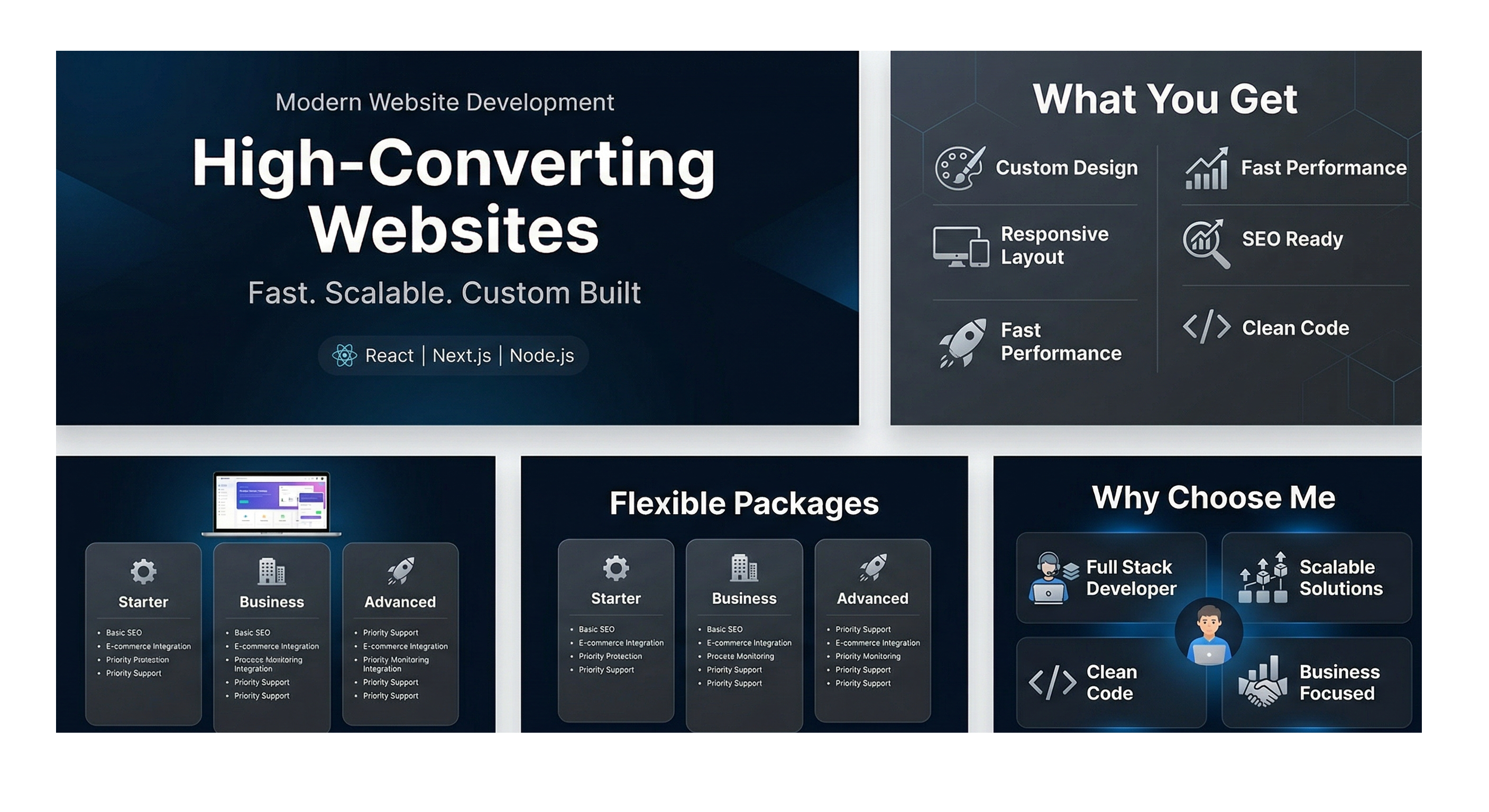 Full-stack developer building fast, scalable, and high-converting digital products. I specialize in websites, mobile apps (iOS & Android), backend systems, APIs, and AI integrations. I focus on helping businesses generate leads, improve conversions, and automate workflows. Currently working with the Ministry of AYUSH and led a team that won Smart India Hackathon 2024. Delivering clean, reliable, and production-ready solutions.