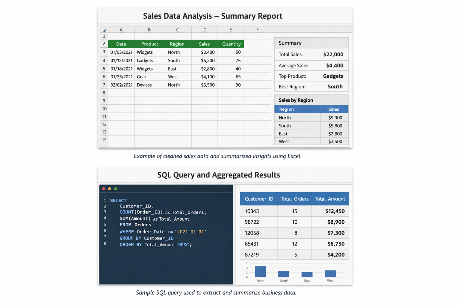 I am a dedicated Data Analyst with hands-on experience in SQL, Python, and Excel, focused on delivering accurate analysis and clear, actionable insights. I help clients clean, analyze, and interpret data to support better decision-making. I work in a structured, detail-oriented manner and always prioritize quality, timely delivery, and clear communication. I’m committed to understanding client requirements and providing reliable results that add real value to their projects.