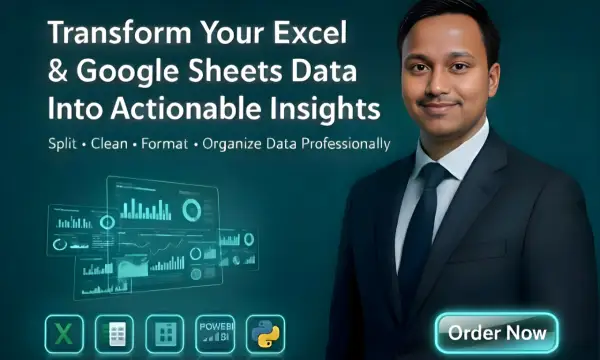 I provide reliable and accurate Excel data cleanup services to transform your unorganized data into clean, structured, and professional spreadsheets.