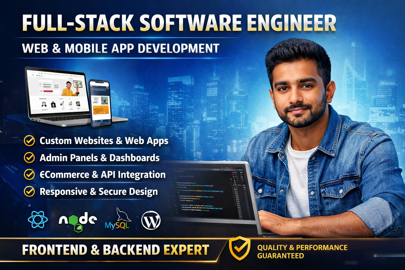 I am a Full-Stack Software Engineer specializing in web and mobile app development with strong data analysis skills. I build responsive websites, scalable backend systems, and high-performance mobile apps using modern technologies. I also analyze, clean, and visualize data to deliver actionable insights, automation, and reliable solutions focused on performance, security, and user experience.