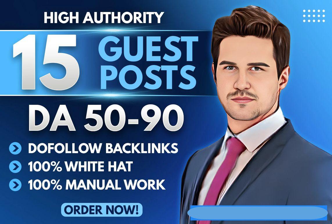 We will provide HIgh DA50-90 Dofollow Guest post with Contextual SEO Backlinks. We will write 500 to 800+ Words Articles related to your Service/Keywords and then publish those articles on relevant high quality guest posting sites.