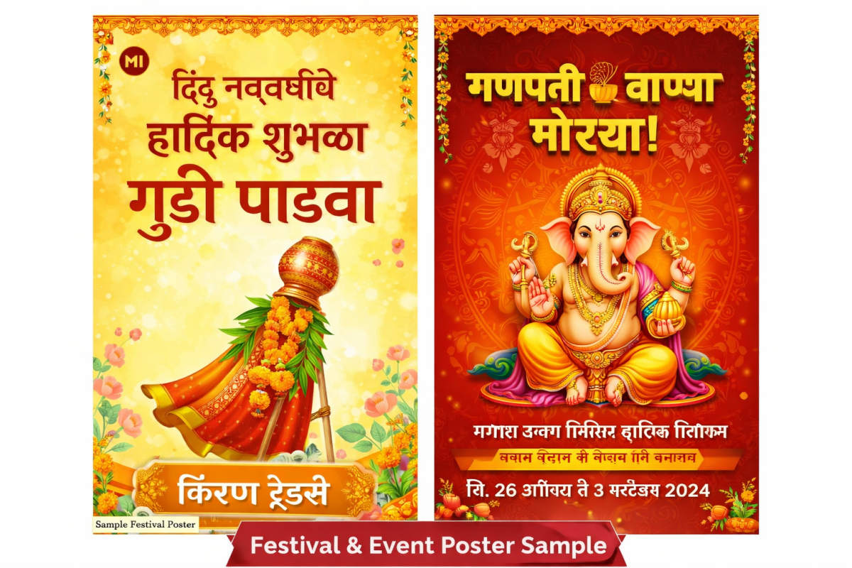 I have experience creating posters for Ganpati, Diwali, Gudi Padwa, Shiv Jayanti,