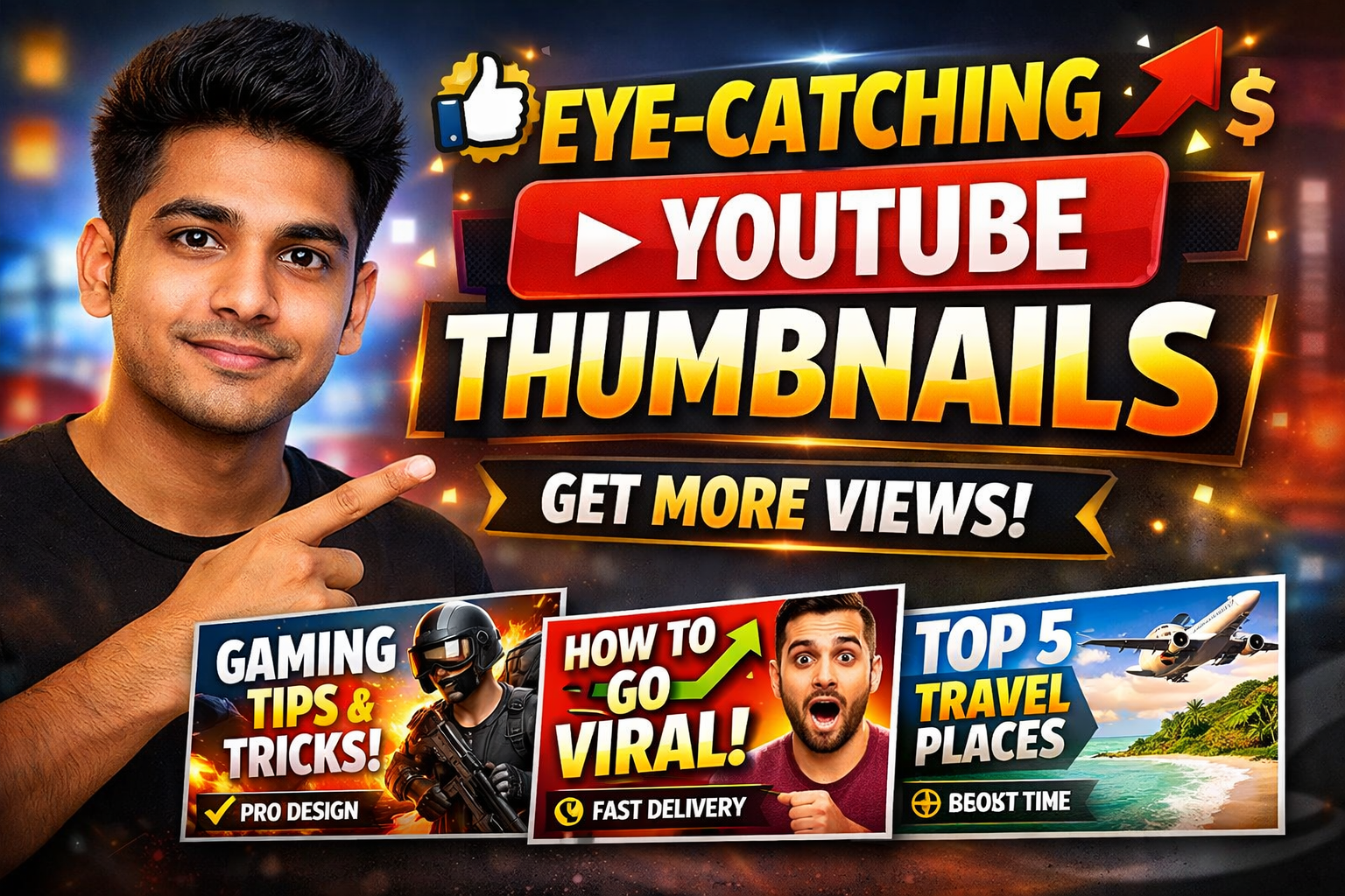 I will design a creative, modern, and clickable YouTube thumbnail that helps your content stand out from others. My goal is to create thumbnails that grab attention instantly and encourage viewers to click on your video.