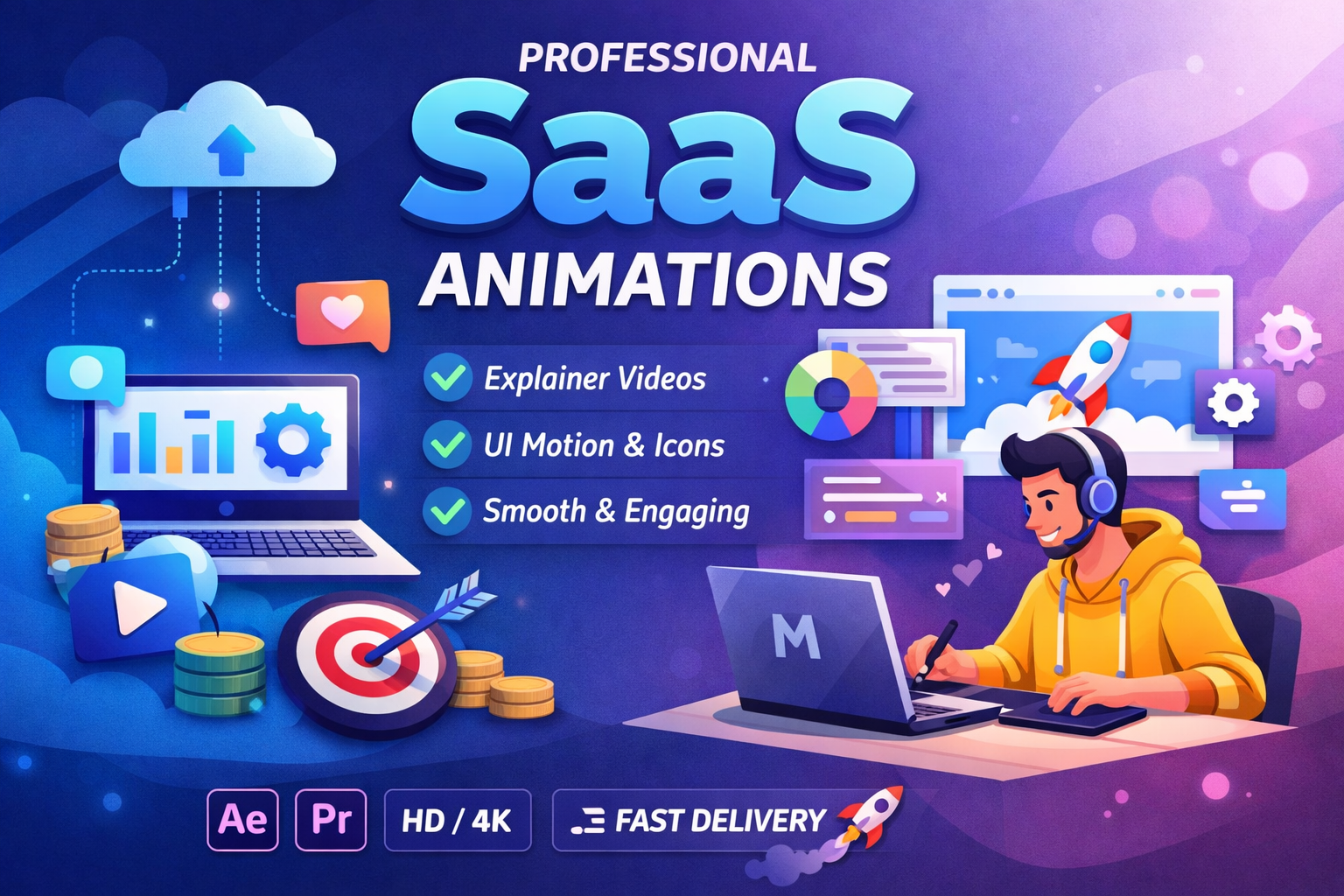 I use Adobe After Effects and Premiere Pro to deliver high-quality animations that look professional and polished. Whether you need a short social media reel, a SaaS explainer, or motion graphics for your video, I make sure the final output is smooth, clear, and ready to use.