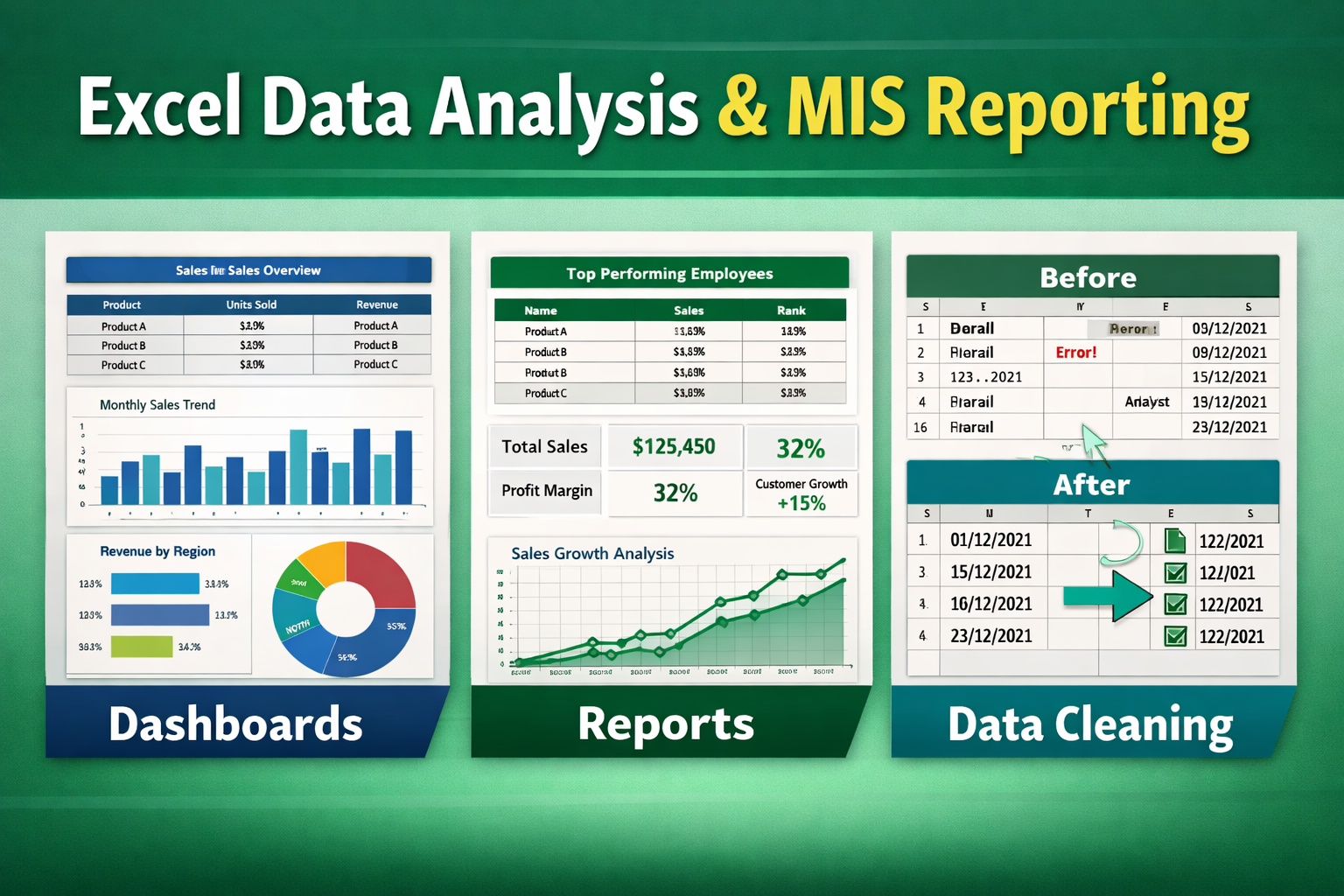 I provide reliable and professional Excel data analysis and MIS reporting services to help you manage, organize, and understand your data effectively. My objective is to transform raw and unstructured data into clear, structured, and meaningful insights that support better decision-making and business growth.