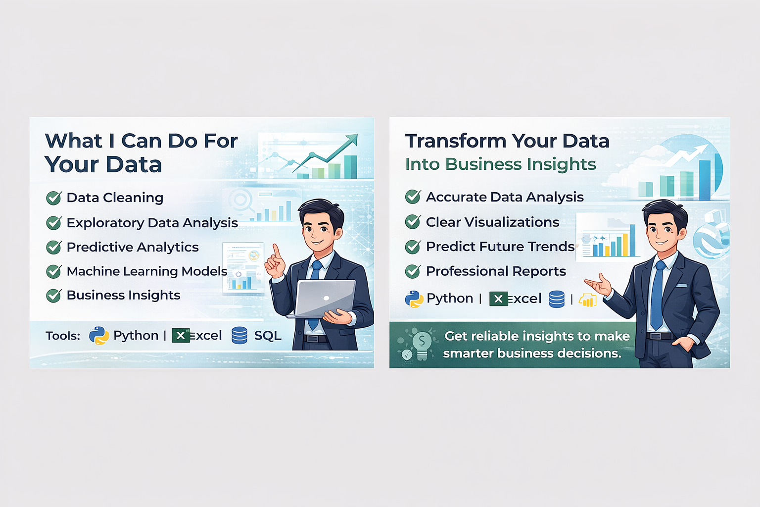 I provide professional data analysis, predictive analytics, and forecasting services. This includes data cleaning, exploratory data analysis, machine learning models, and data visualization to help businesses gain meaningful insights from their data.