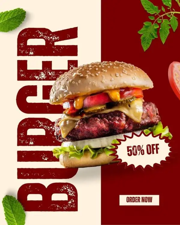 I keep the design simple, modern, and visually focused on the product. The goal is to make the food look fresh, delicious, and appealing so customers instantly notice your advertisement.