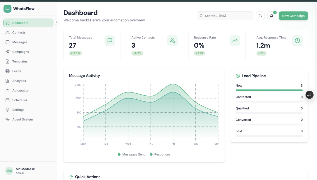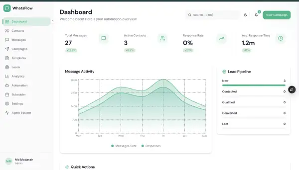 I will set up a complete WhatsApp automation and AI-powered lead management system that helps your business capture, organize, and manage leads automatically — without manual work or missed follow-ups.