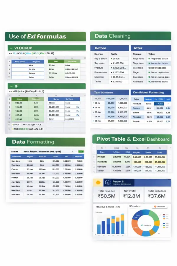 Advanced formulas (VLOOKUP/XLOOKUP, IF, INDEX-MATCH, Pivot, Power Query)