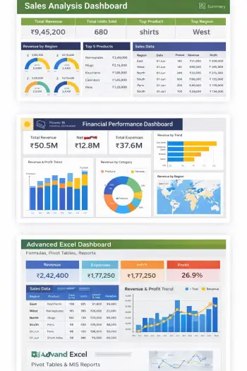 I can create dynamic Excel dashboards, complex formulas, pivot tables, MIS reports, and automate reports to save time. In Power BI, I build interactive dashboards, data models, and insightful reports for better decision making.