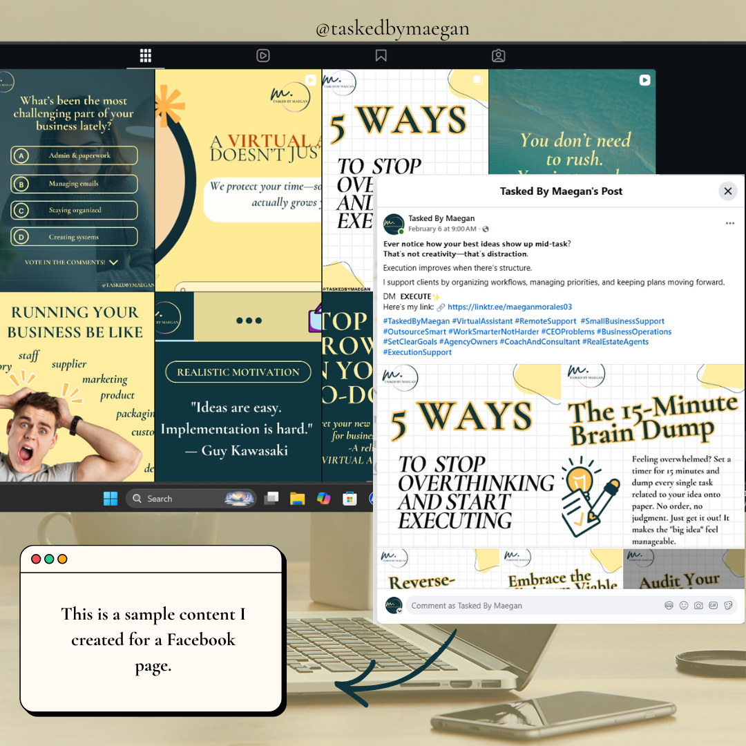 More than just completing tasks, I aim to be dependable support behind the scenes someone clients can trust to help keep their business organized, moving forward, and growing steadily.