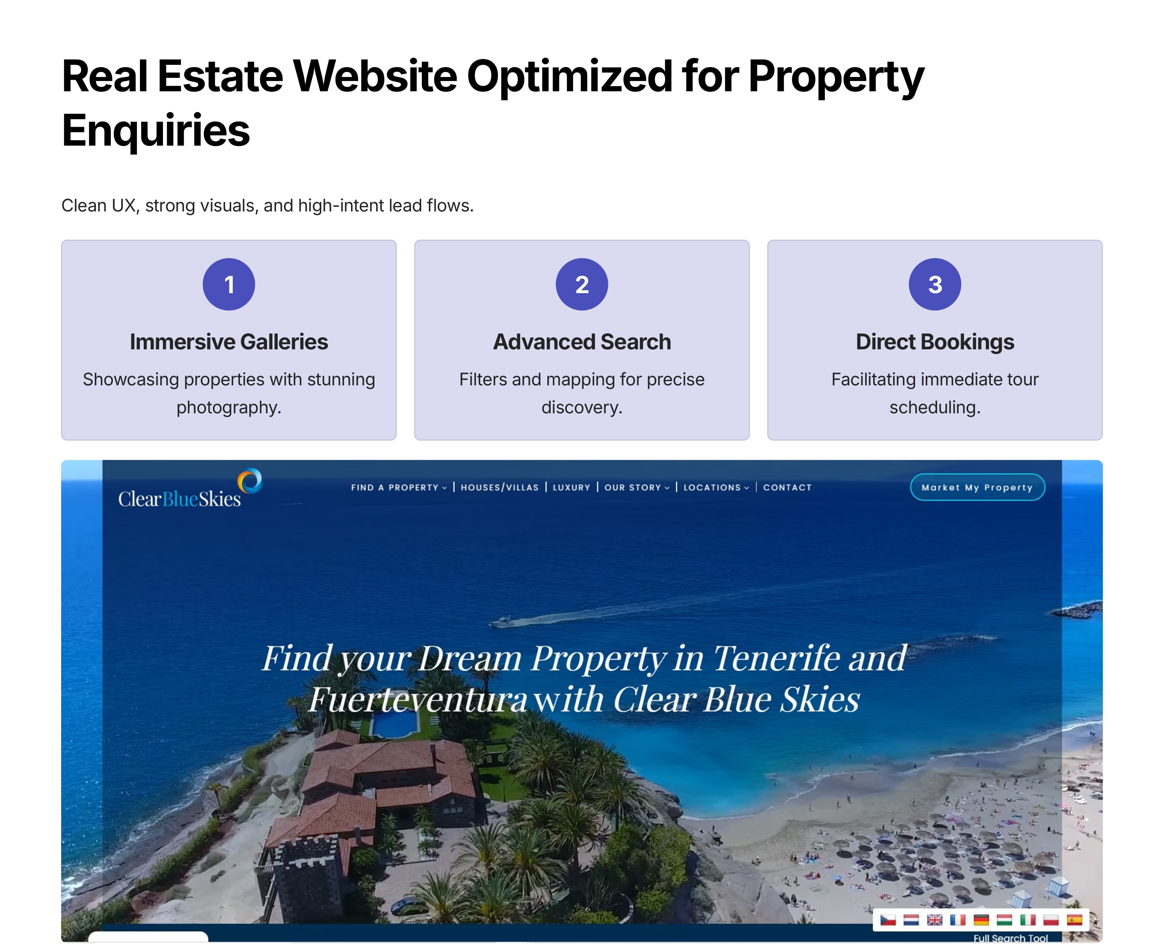This ensures your website isn't just visually clean, but built to upport enquiries and conversions from day one. The result is a custom-built website designed around clarity, performance, and real business goals - not generic layouts.