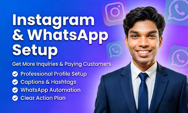 Set up Instagram & WhatsApp with bio, captions, hashtags, WhatsApp greetings & 1 reel.