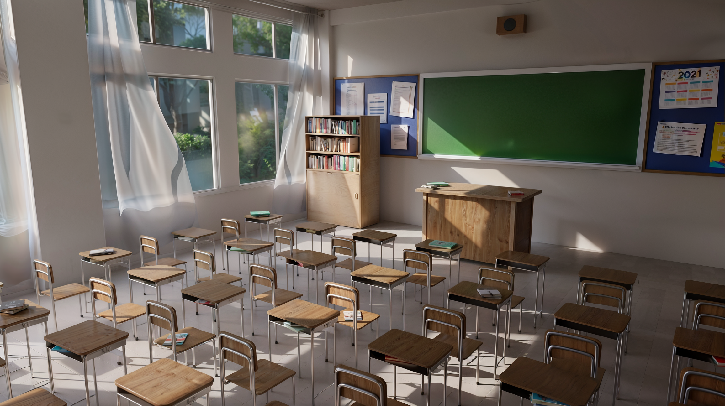 • Photorealistic classroom render