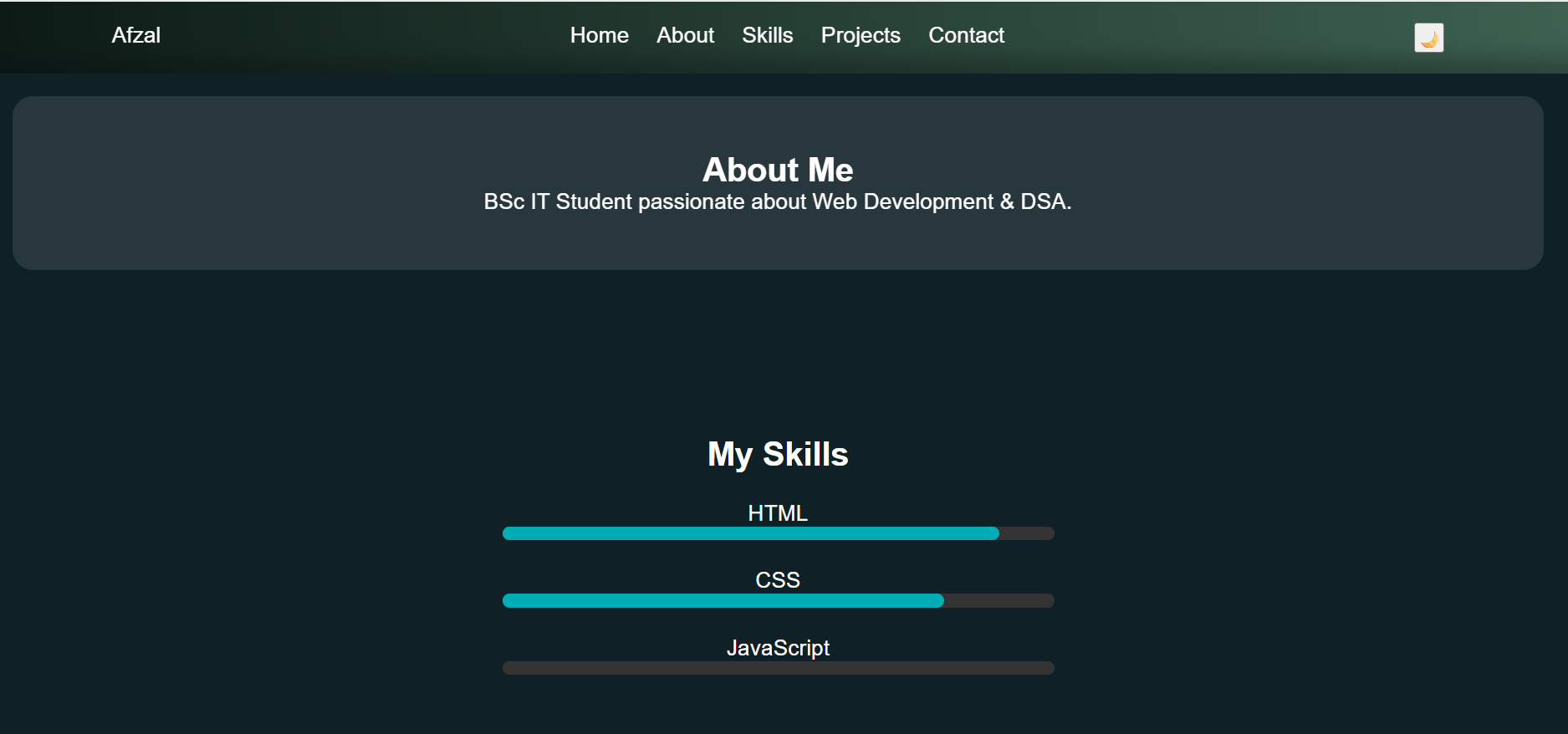 Hi, I am Afzal, a BSc IT graduate (2025) with strong skills in HTML, CSS, and JavaScript. I create responsive, clean, and modern websites for businesses and personal brands. I focus on fast loading speed, mobile responsiveness, and clean design. I am dedicated, hardworking, and ready to deliver quality work on time.
