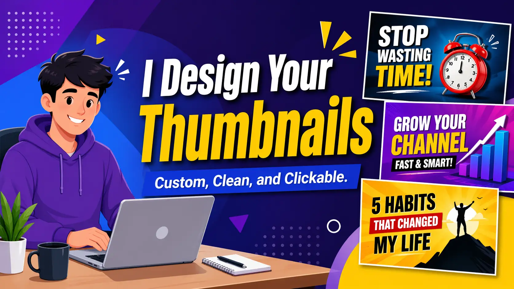 I am a freelance graphic designer and I create custom YouTube thumbnails for your channel. I design clean, eye catching and clickable thumbnails that match your content, audience and brand style. My goal is to help your videos stand out in search results and suggested feeds so you can get more clicks and views.