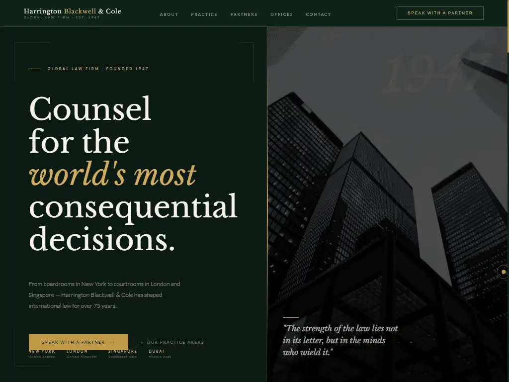 Home, About, Practice Areas, Contact pages, Responsive, Google Map, SEO-friendly, online booking.