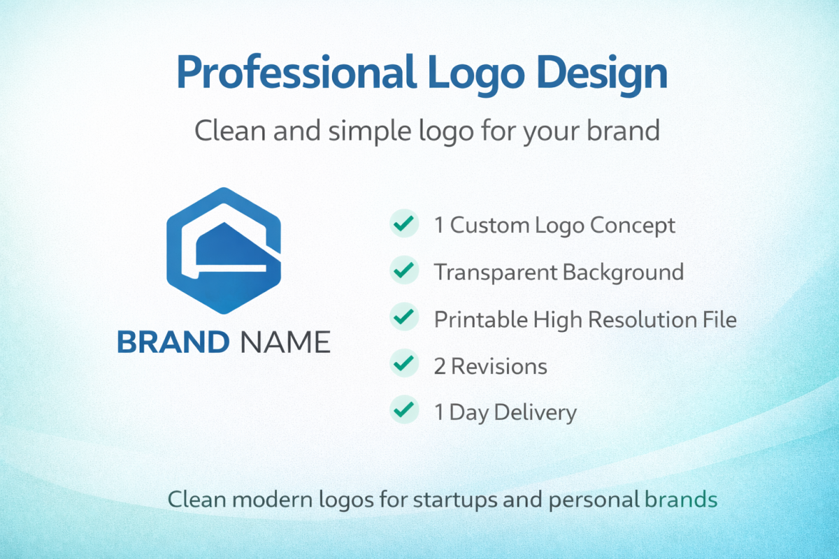 I offer professional logo design services focused on creating strong and memorable brand identities for businesses, startups, and individuals. A logo is the first impression of a brand, and I ensure that every design reflects your vision, values, and target audience. My goal is to deliver logos that are clean, modern, and visually appealing while remaining timeless and versatile for long-term use.
