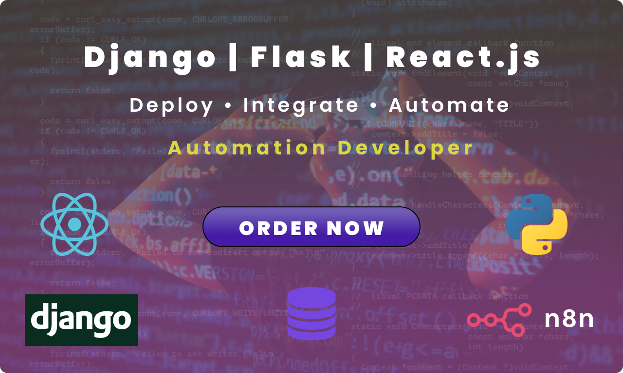 I am Muhammad Hanif, a professional Python developer specializing in Django and Flask. I build secure, scalable web applications and RESTful APIs tailored to business needs. With expertise in backend architecture, database design, and performance optimization, I deliver clean and maintainable code. I also create automation workflows with n8n to streamline processes and improve efficiency, ensuring reliable, high-quality solutions for long-term success.