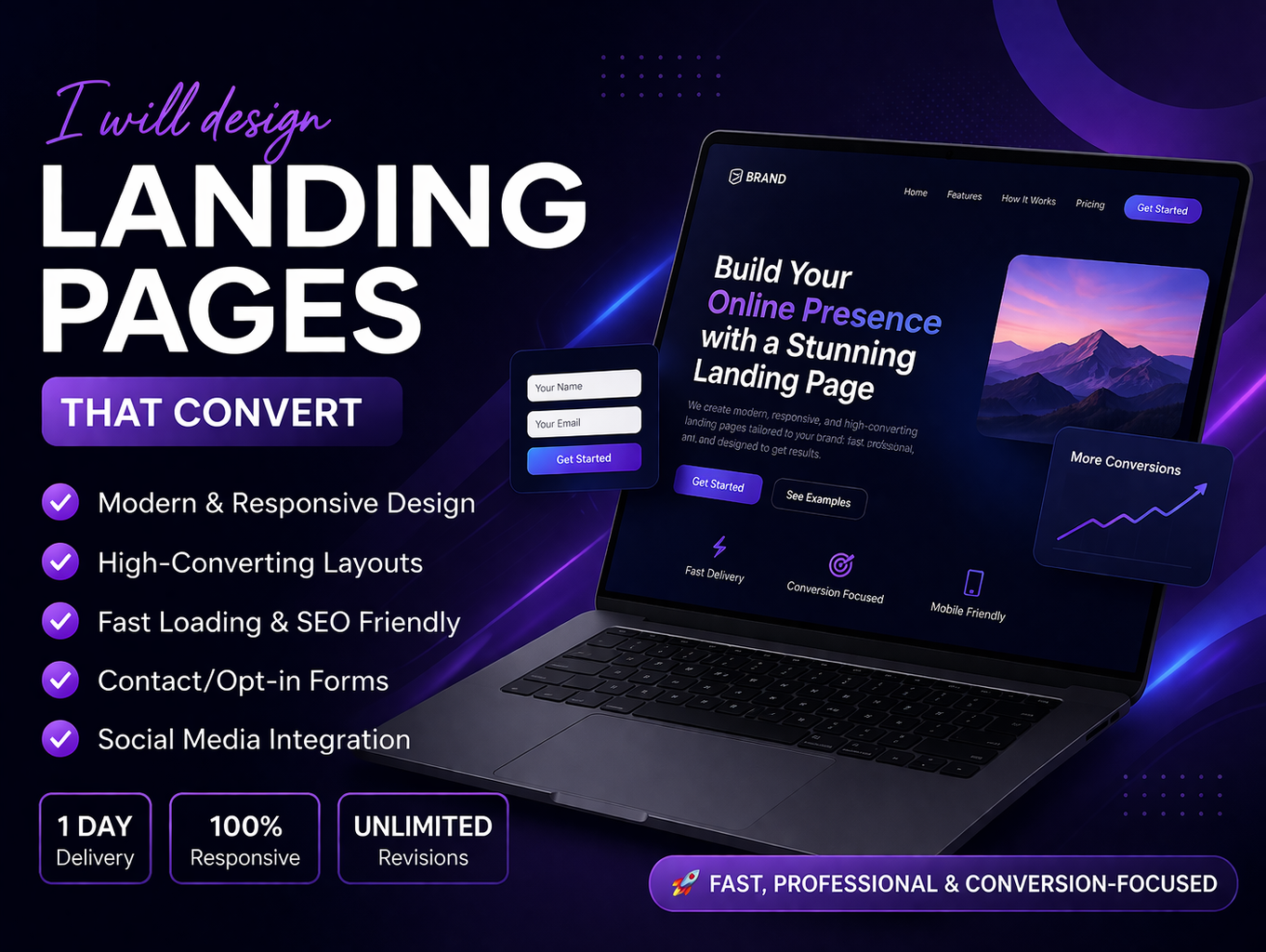 I will create a clean, modern, and high converting landing page that helps your business make a strong first impression. I understand that a good landing page is not just about design, it is about clearly presenting your message and guiding visitors to take action.