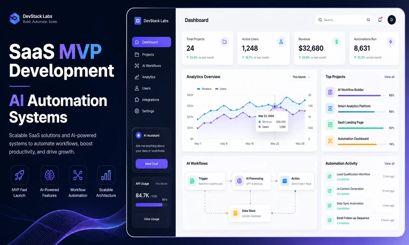 I will build a scalable SaaS MVP or AI-powered system tailored to your business idea, so you can launch quickly, validate your concept, and start generating results without wasting time on unnecessary features or overengineering.