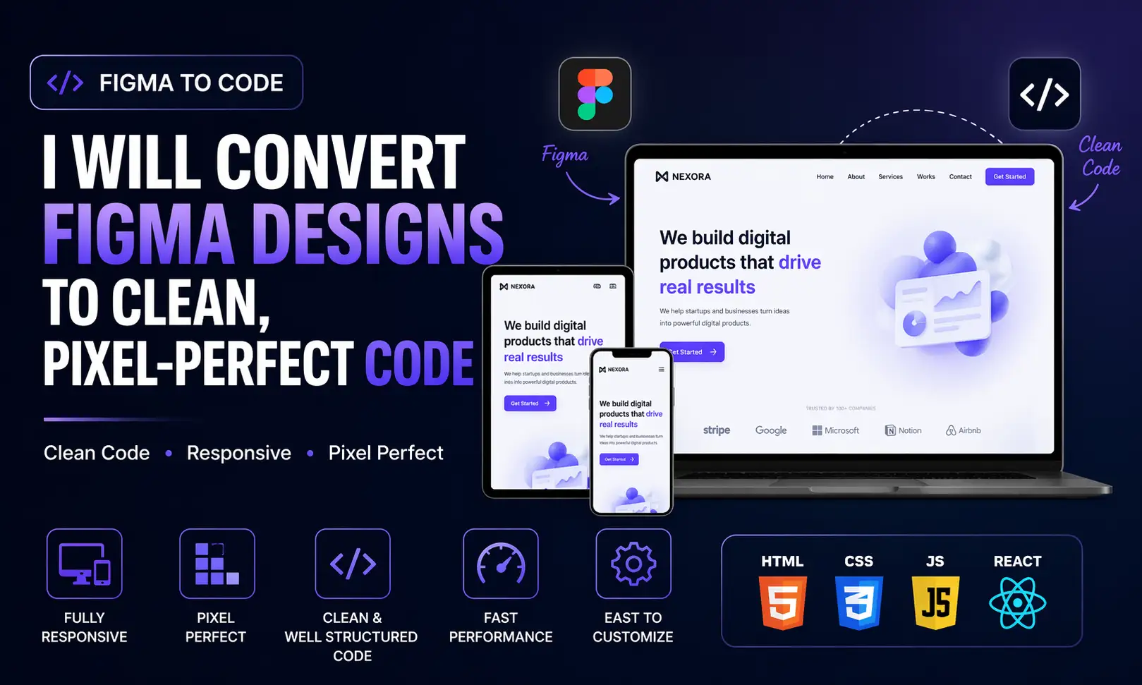 I will convert your Figma design into clean, responsive, and production-ready code.