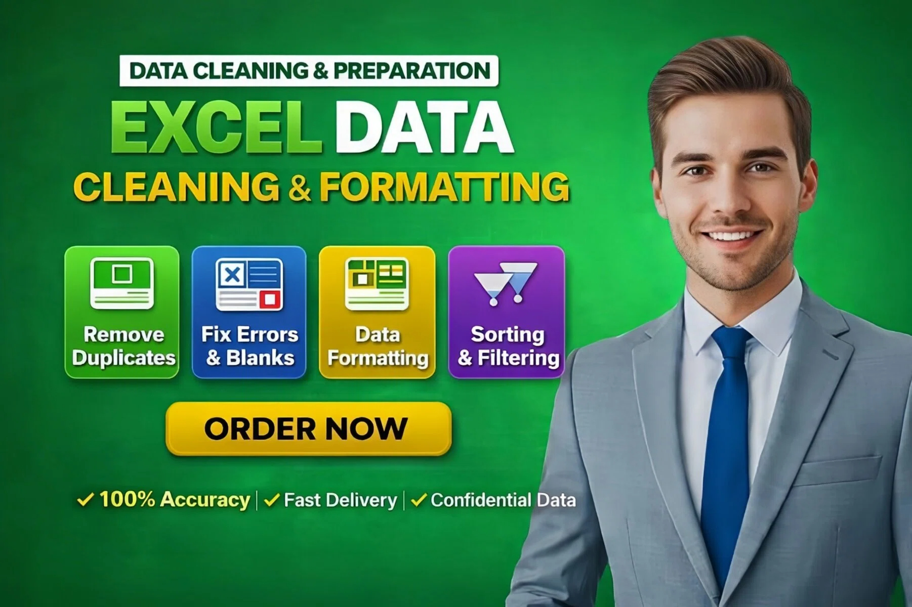 I provide professional data cleaning services for businesses and individuals. If your file has errors, duplicates, formatting issues, missing values, or multiple sheets, I will fix it quickly and accurately.