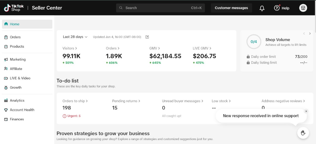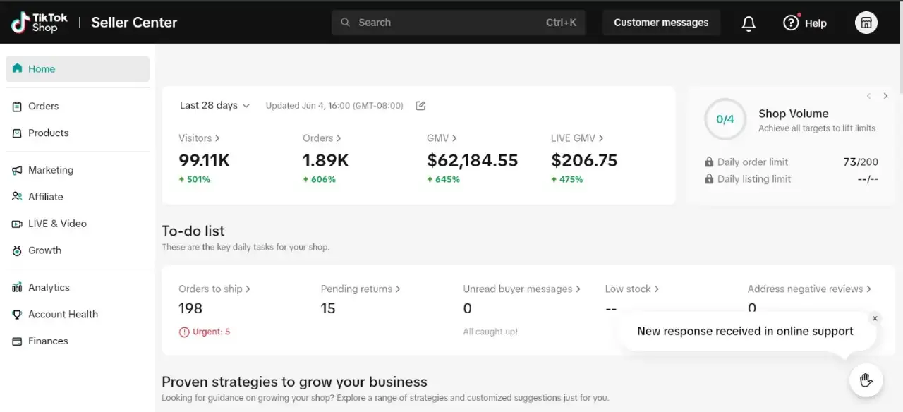 TikTok Shop setup, product listing, and basic affiliate support to start selling.