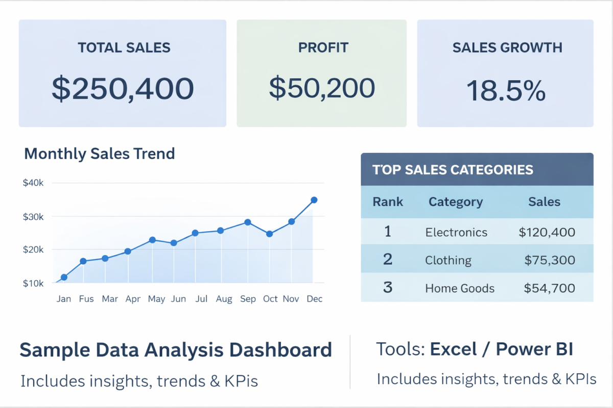 I am a BI & Data Analyst with experience in Excel, Power BI, SQL, Python, and BI Publisher reporting. I create interactive dashboards, automated reports, and data insights that help businesses track KPIs and make informed decisions.